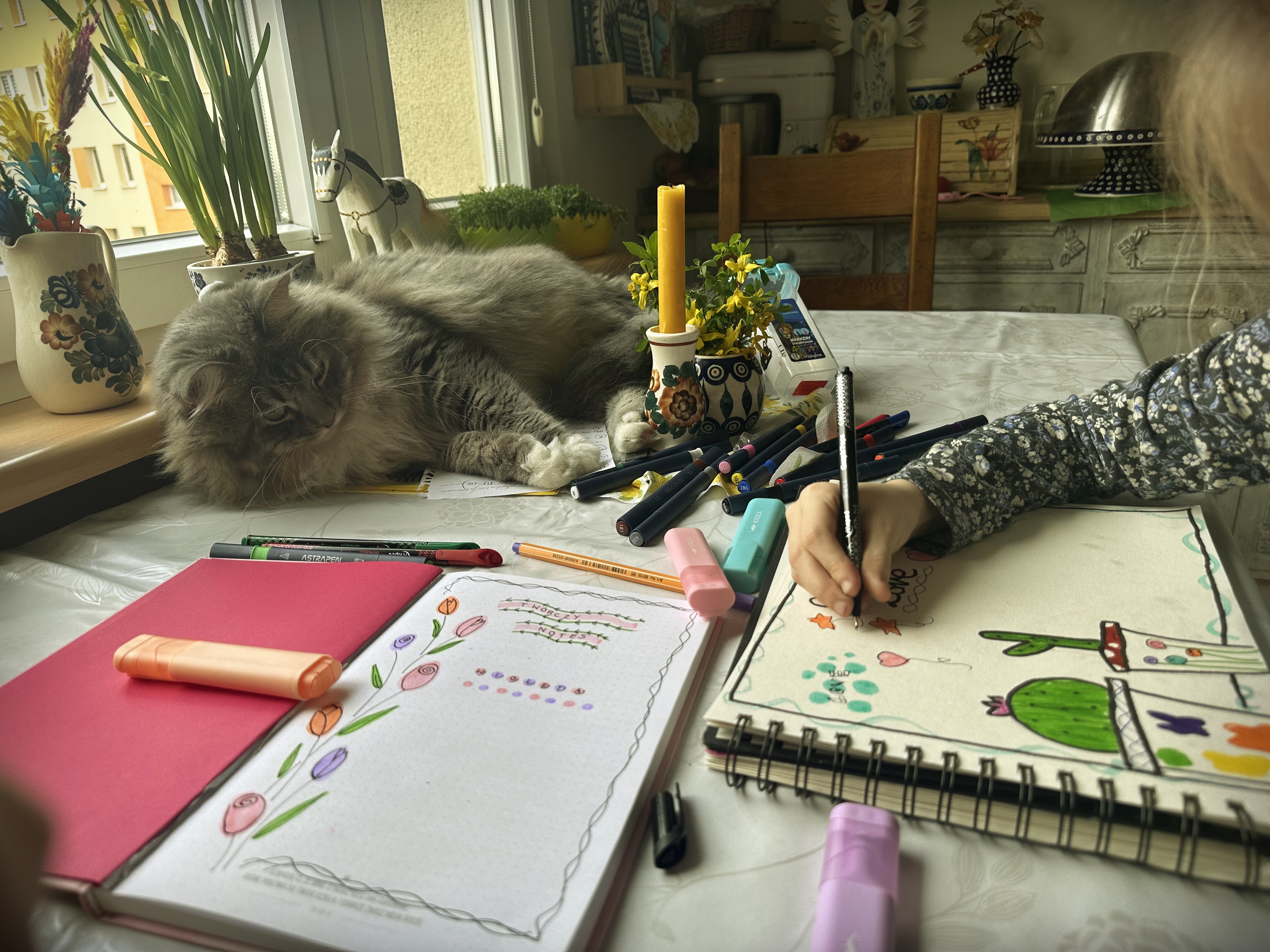 Uczciwie chciałam uczyć się kaligrafii hahah przyszedł taki, wziął i się położył...no i jak tu pracować?